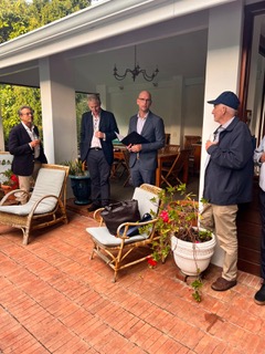 With spectacular views of Table Mountain, friends and colleagues of The JBSF—many in town for the Mining Indaba—gathered in Bishopscourt, generously hosted by Charles McGregor, for an evening of conversation, connection, and reflection. The highlight of the evening was a talk by Michael Cardo, who shared insights from his biography Gold, Diamonds and Dynasty, which explores the life and legacy of Harry Oppenheimer (HFO).